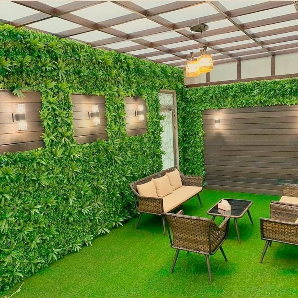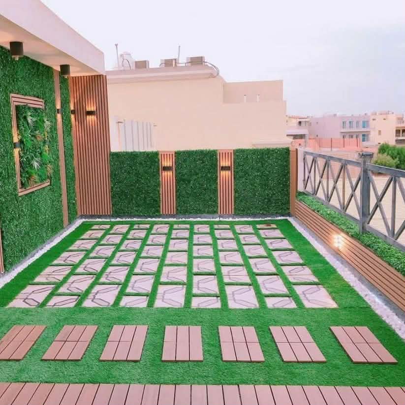 يمكنك التخلي عن السيراميك واللجوء للعشب الصناعي في تزيين تراس بيتك لتتمتع بجلسة ساحرة وسط لمسة خضراء ناعمة تمنح بجمالها لمنزلك هيئة أروع مائة مرة وتصير حديث جيرانك وزائريك !