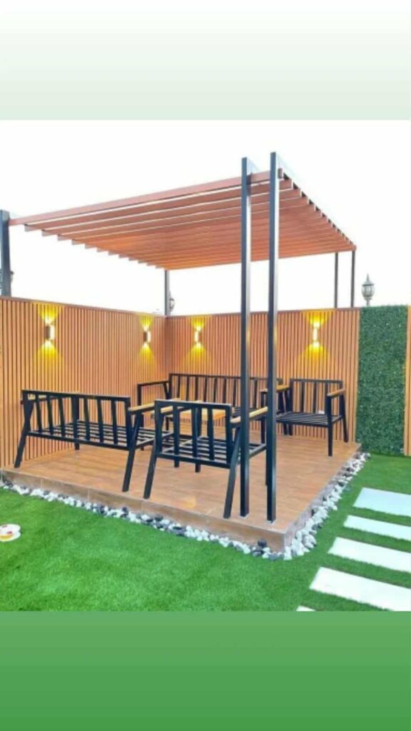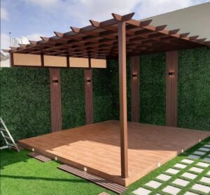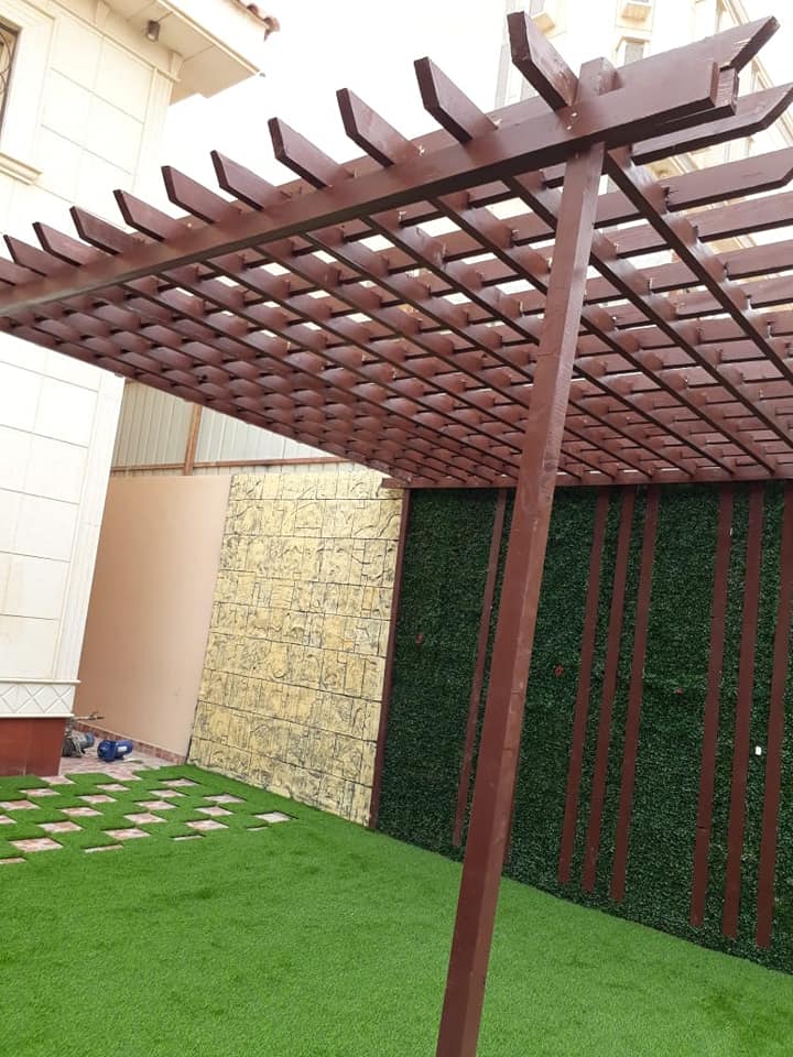 - تتميز البرجولات الخشبية بطابعها الطبيعي والدافئ، وهي تضفي جوًا راقيًا وجماليًا على المساحات الخارجية.
