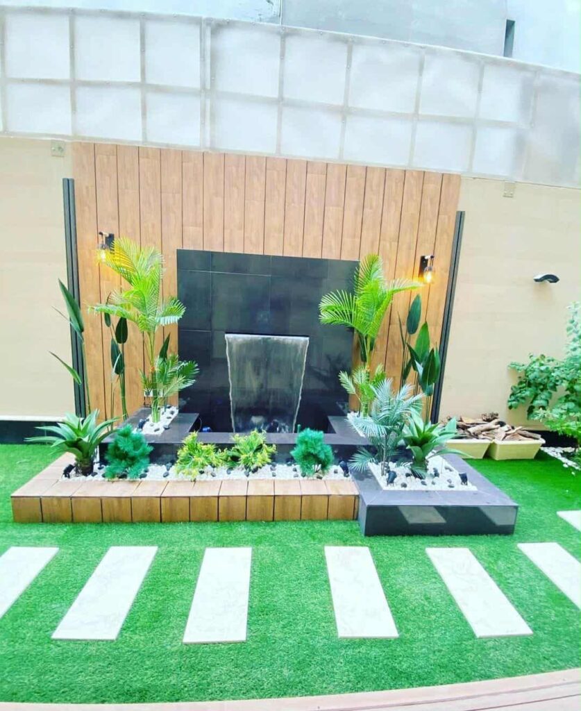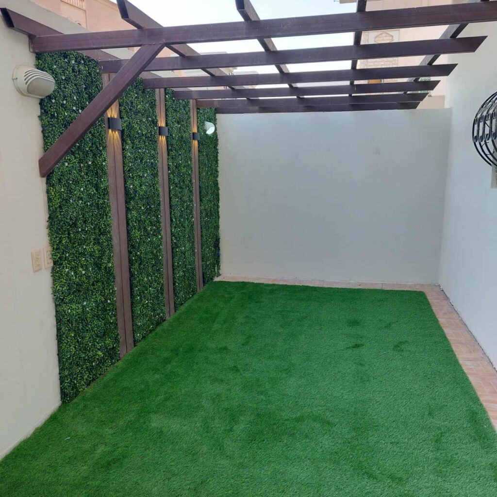 جودة ودقة تصميم الأعشاب الصناعية تجعلك تفكر مليًا قبل أن تجزم أنها ليست طبيعية.. يتجلى ذلك في النموذج المحير الموضح أمامنا، تحديدًا العشب الصناعي الذي يسكن تلك البقعة من أرضية الحديقة، والذي يؤكد أنه من حيث المظهر لا فرق بين الطبيعي والصناعي!