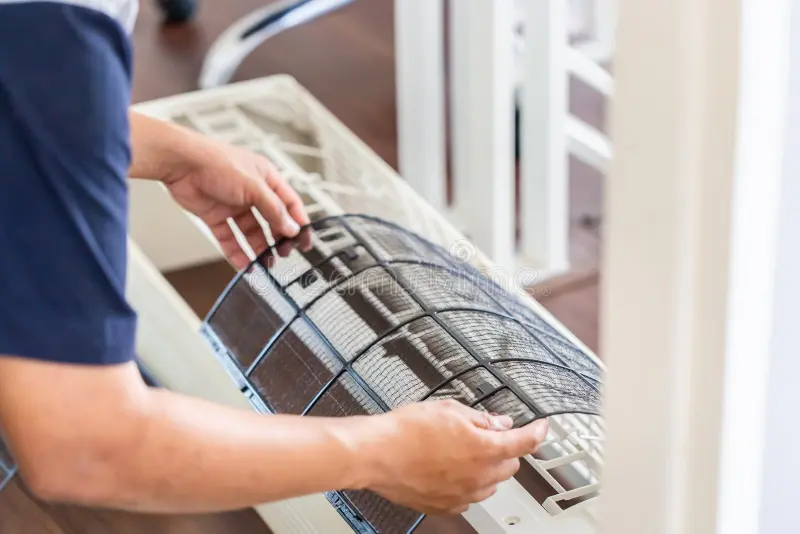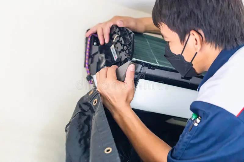- يقومون بعذ ذلك بتنظيف المكيف بشكل جيد وذلك يكون من الداخل وأيضا يهتمون جيدا بالقيام بتنظيف الفلتر.