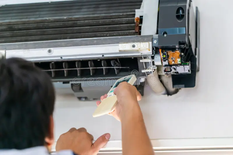 - يحرص فريق العمل على الفك لجهاز المكيف بالطريقة الصحيحة وذلك لتجنب اي اضرار.